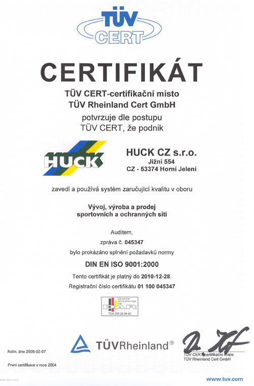 Firma Berger - Huck, s.r.o., vyrábí a prodává sportovní vybavení - sportovní sítě, ochranné sítě, hliníkové vybavení pro fotbal, tenis, volejbal, házená, lyžování, hokej, badminton, golf, baseball. Nabízíme také žíněnky, doskočiště a tatami pro judo, gymnastiku, atletiku a dětské pěnové výrobky. Pro stavebnictví a průmysl dodáváme průmyslové sítě, bezpečnostní sítě, kontejnerové sítě, šplhací sítě, clony na lešení a stavební plůtky. Pro dětská hřiště dodáváme šplhací sítě, lanové sestavy, kolotoče a houpačky.