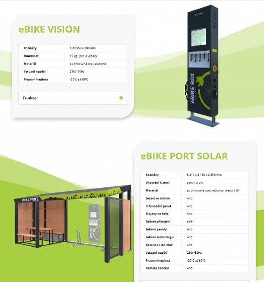 Vnější perovedení zaručuje odolnost vůči rozdílným teplotním změnám případně nepříznivým povětrnostním podmínkám. Krytí IP54 zaručuje barevnou stálost. Nabíjecí stanice je pevně ukotvená betonovým základem do země. Možnost zobrazení cyklostezky, mapy nebo reklamy na podsvícené konstrukci.