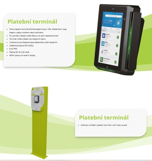 Novinka-platební terminál pro platbu platebními kartami s následným zasláním faktury do emailu zákazníka, může ovládat několik AC nebo DC stanic.