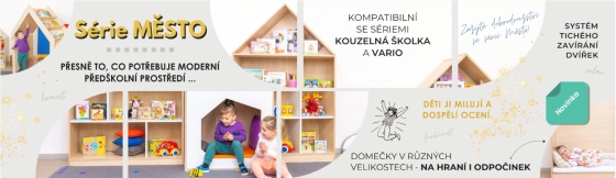 Nábytek ze série MĚSTO je navržen s důrazem na funkčnost, jednoduchost a hravost - přesně to, co moderní předškolní prostředí potřebuje. Dominantou série jsou skříňky ve tvaru domků, které nejen zaujmou na pohled, ale zároveň vytvářejí útulné a podnětné místo pro hru, učení i odpočinek. Vybrané typy skříněk si můžete přizpůsobit dle vlastních představ - dokoupit si dvířka, zásuvky, poličky či kontejnery, které se prodávají samostatně. Vybírat můžete z nábytkových elementů ze série KOUZELNÝ NÁBYTEK s hravými úchyty ve tvaru vlnky nebo ze série VARIO se zapuštěnými úchyty. Velkou výhodou série MĚSTO je, že k domečkovým skříňkám můžete kombinovat i další skříňky ze sérií KOUZELNÝ NÁBYTEK a VARIO, které rozměrově i designově pasují, takže si snadno poskládáte nábytek, který bude funkční, estetický a plně uzpůsobený vašim potřebám.